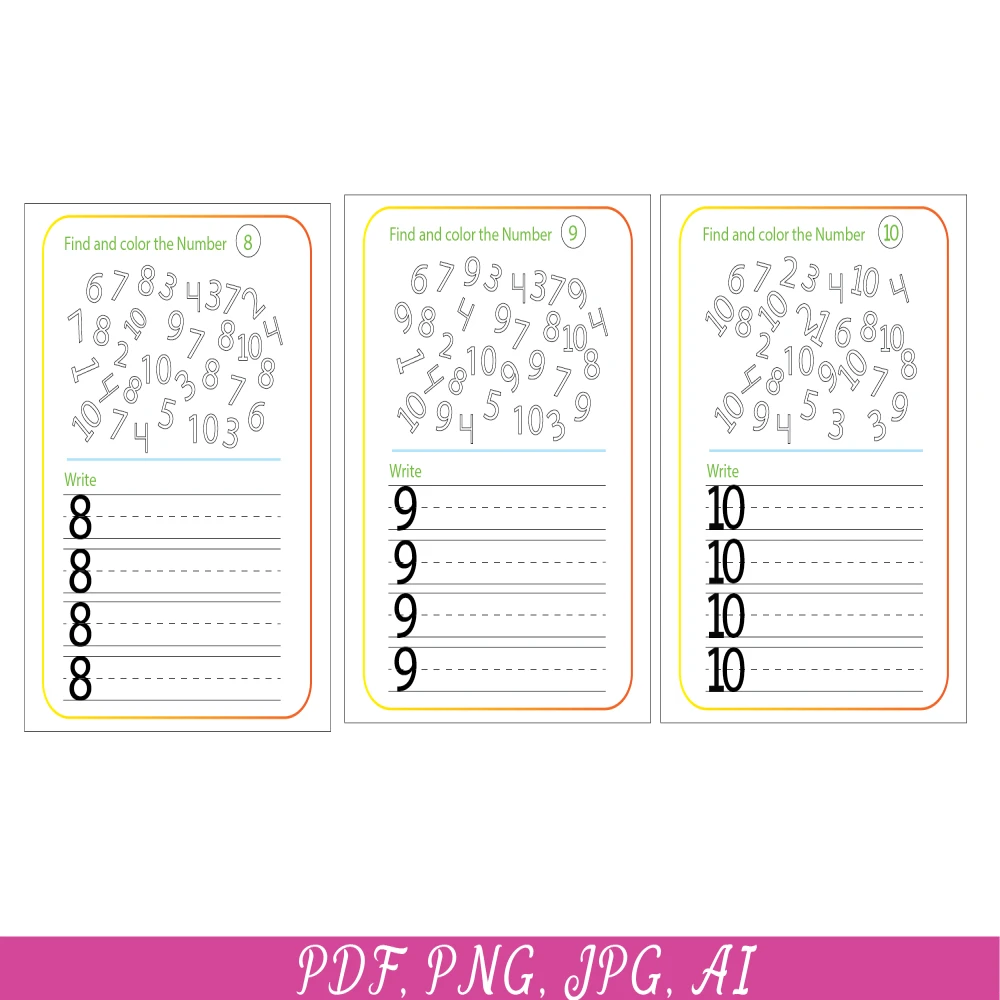 1-10 Number printable worksheets, Tracing, matching numbers, handwriting practice, kindergarten worksheets, learning numbers