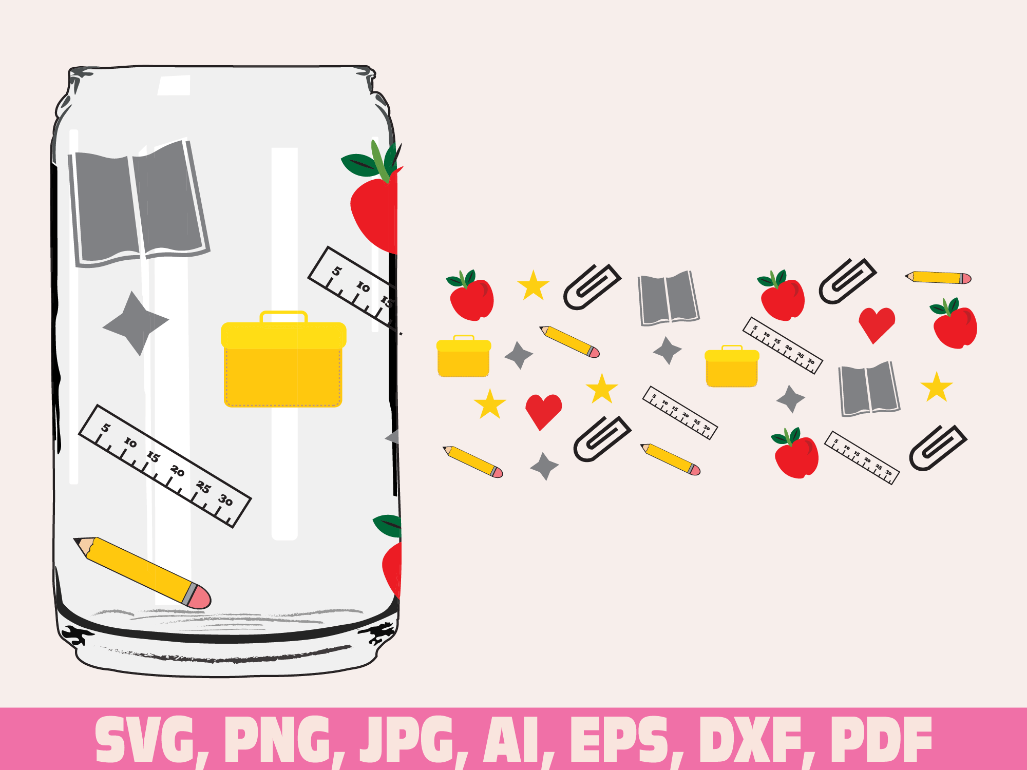 Teacher and Student Supplies glass wrap svg png, can glass wrap, Glass Wrap Svg, 16oz Full Wrap Svg, coffee can glass svg, Glass can svg
