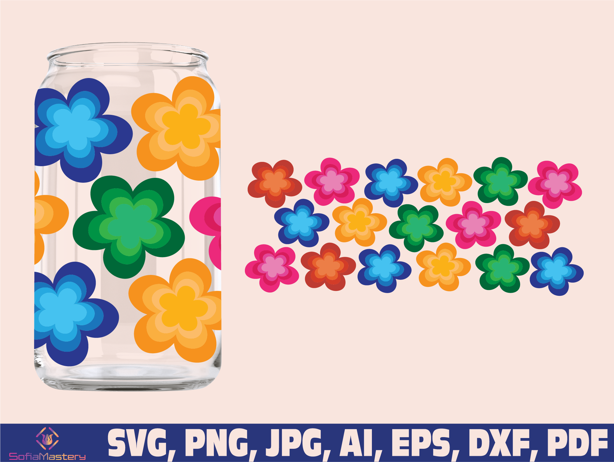 Flowers glass wrap svg png, can glass wrap, Flower Glass Wrap Svg, 16oz Full Wrap Svg, Can Glass Svg,Daisy Coffee Glass svg