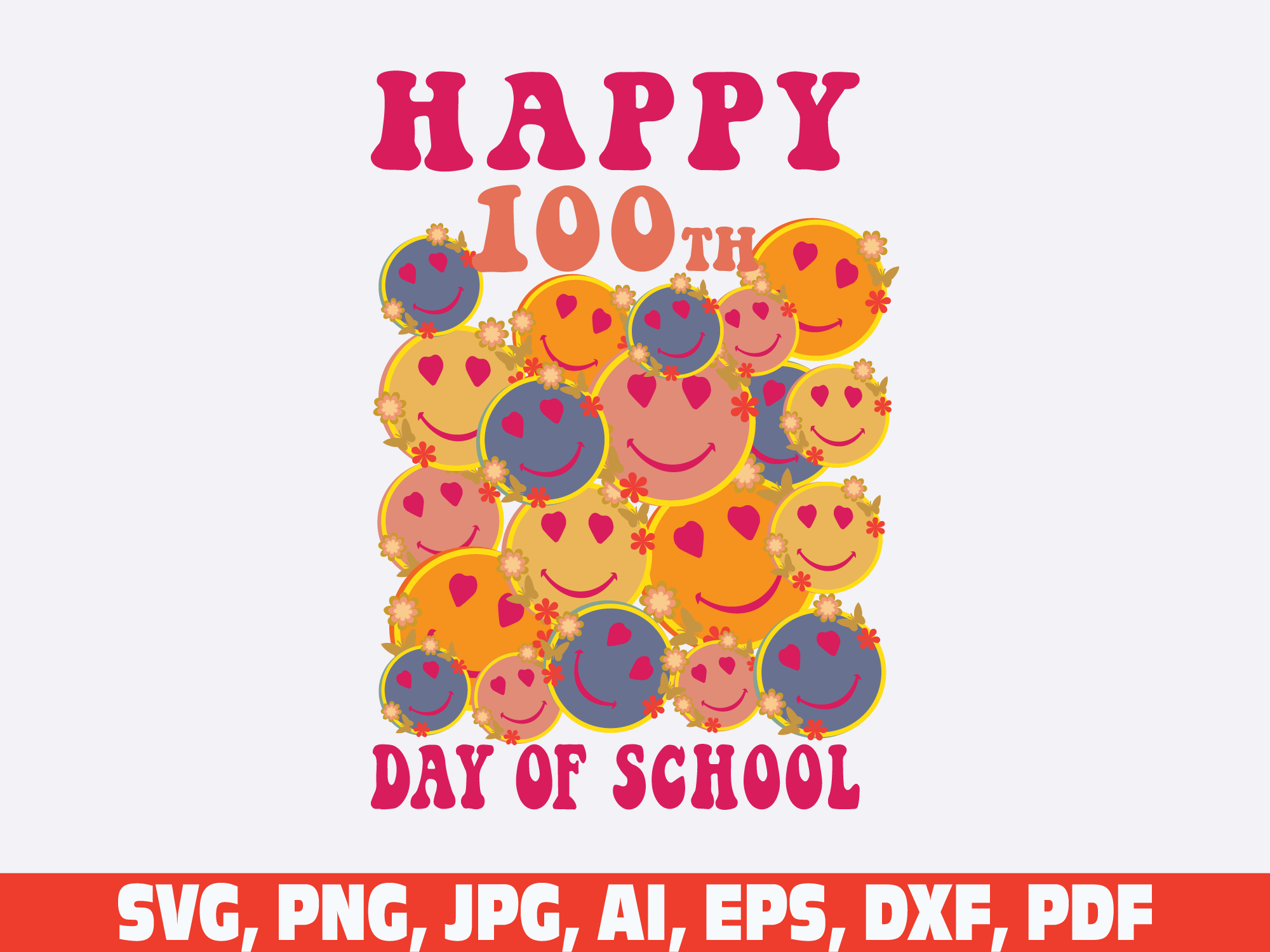100 days of school retro vintage smiley face svg png, 100 days of school svg, 100 days smarter svg, leopard smile face 100 days of school