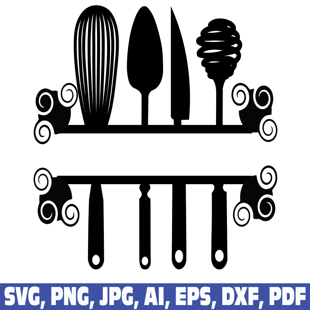Kitchen split frame svg, kitchen svg, cooking svg, kitchen monogram svg, flourish kitchen svg, cooking monogram svg, cook svg, monogram frame