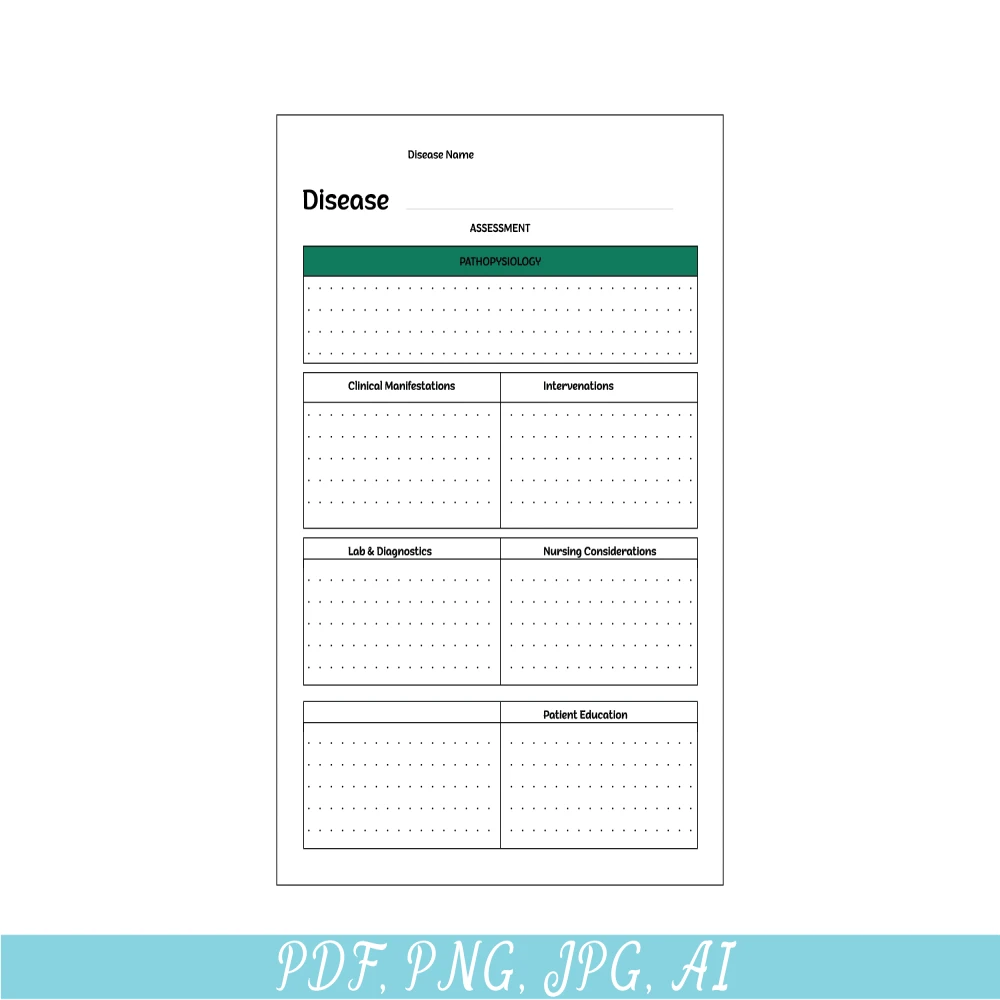 Printable Nursing student Disease Process, Student Nurse Templates, Study Notes, Study resources, Nursing school documents