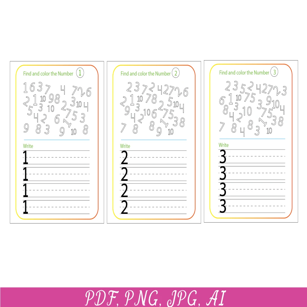 1-10 Number printable worksheets, Tracing, matching numbers, handwriting practice, kindergarten worksheets, learning numbers
