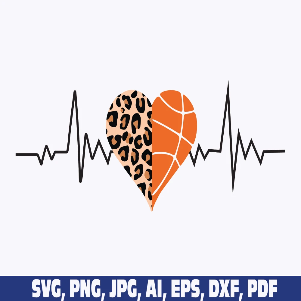 football baseball softball basketball soccer leopard cheetah print half heart svg png, leopard heart heartbeat svg, cheetah heart ekg svg