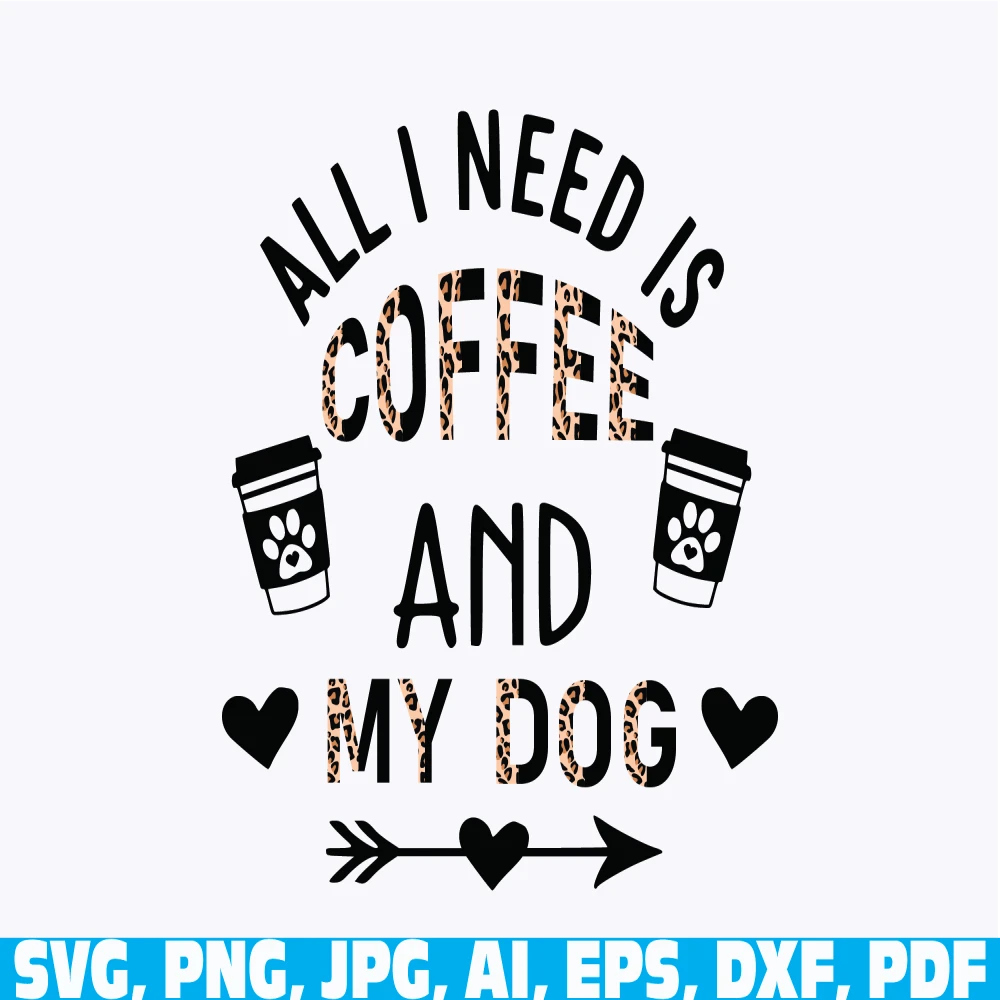 all i need is coffee and my dog, coffee , Coffee Life, Love Coffee, leopard coffee svg png, coffee dog, dog mom mama