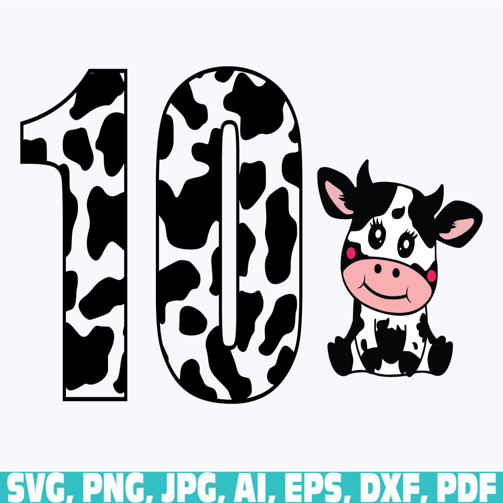 Cow number birthday, 10th birthday cow, Tenth birthday Cow print, Birthday girl Kid cow, cow number with baby cow