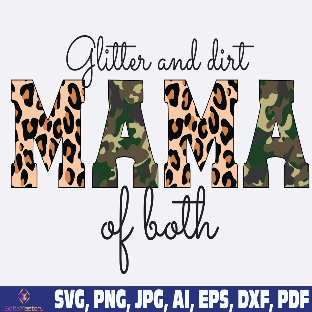 Glitter and dirt mom of both png svg, half leopard camo mama of both png, mom leopard png, mama leopard png, mom png, mother day png svg