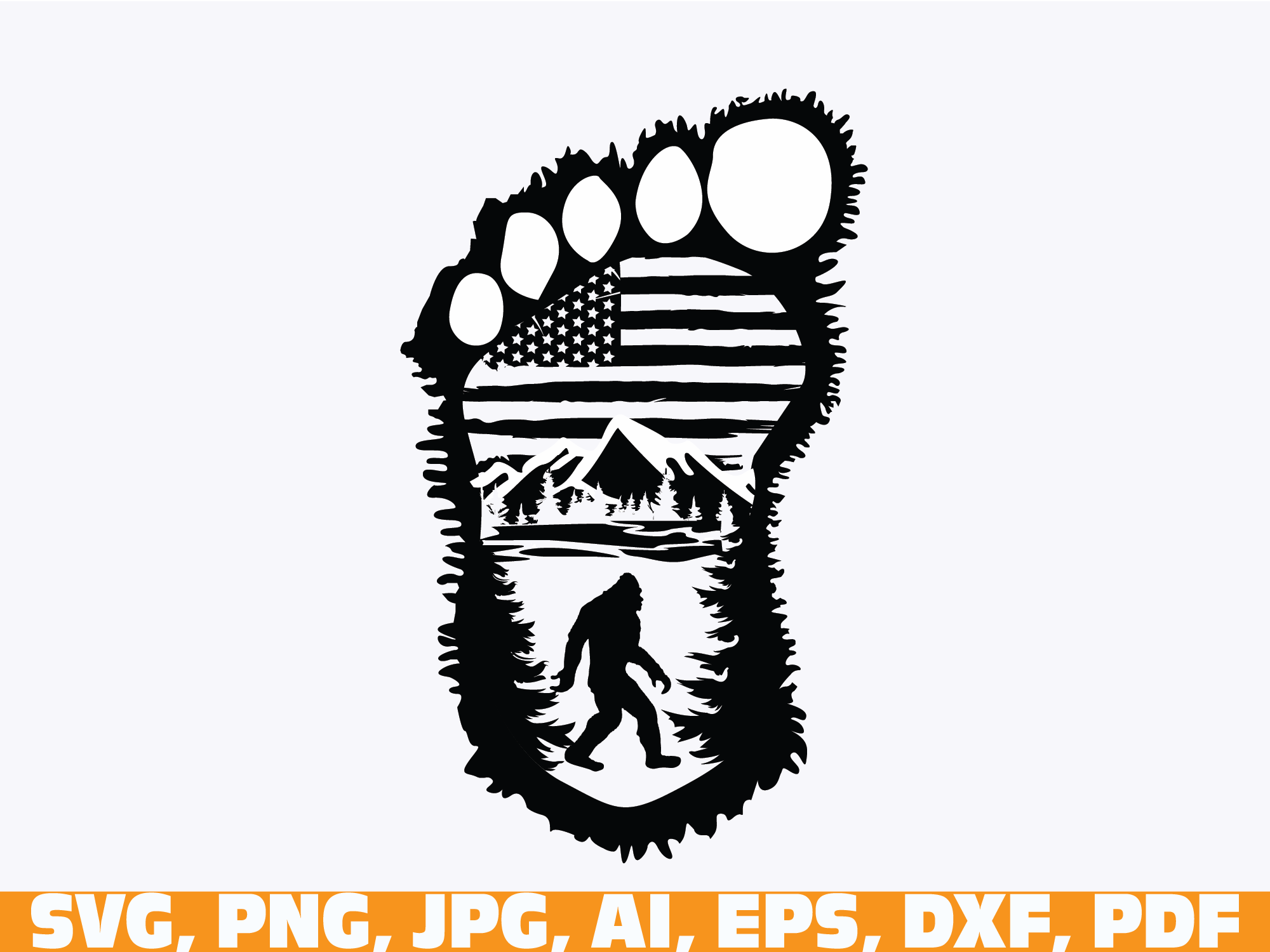 bigfoot, sasquatch, mountain scene, mountain, big foot usa flag, Bigfoot with Flag, Bigfoot and alien, bigfoot clipart, Adventure SVG shirt