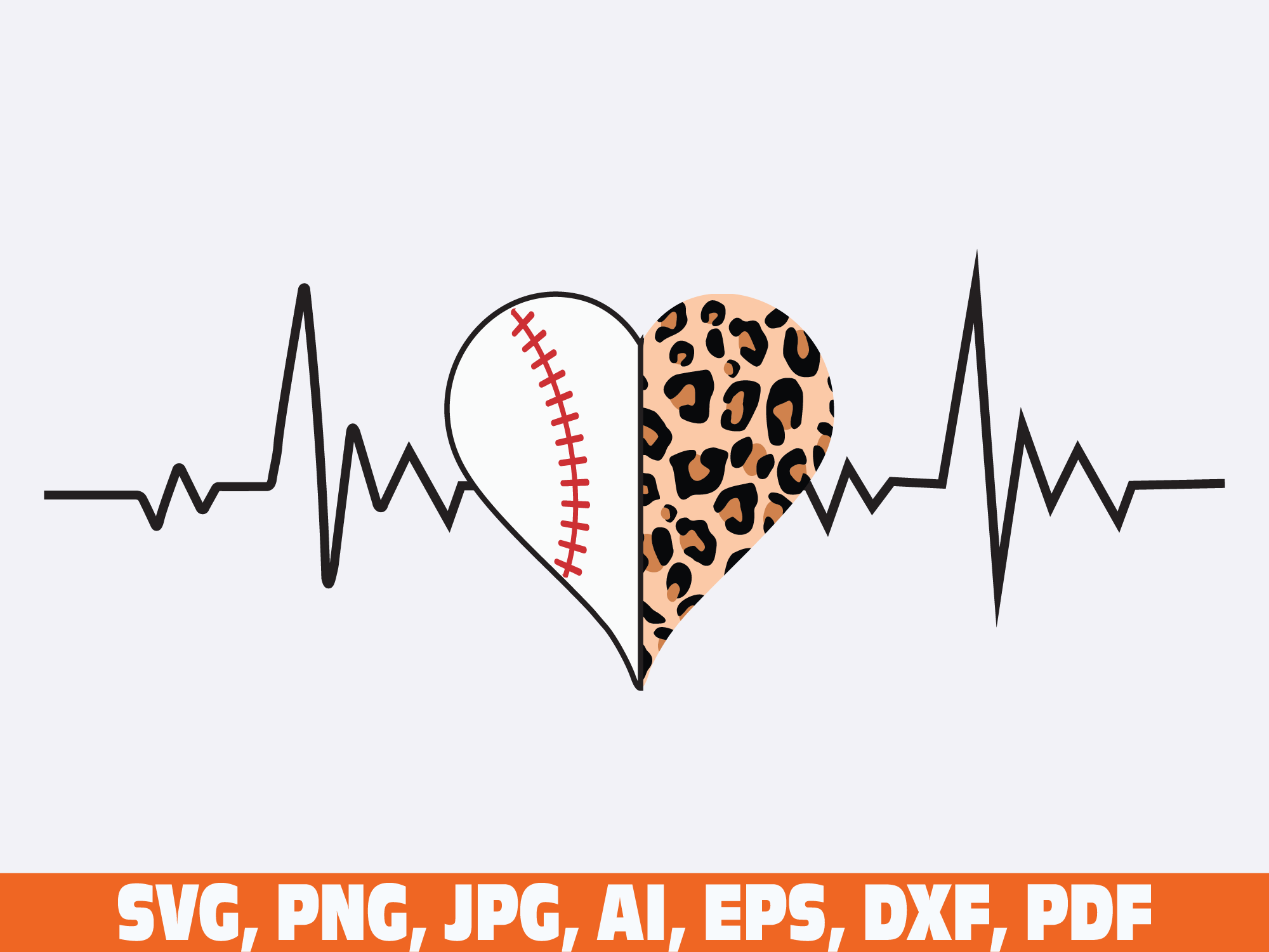 football baseball softball basketball soccer leopard cheetah print half heart, leopard heart heartbeat, cheetah heart ekg