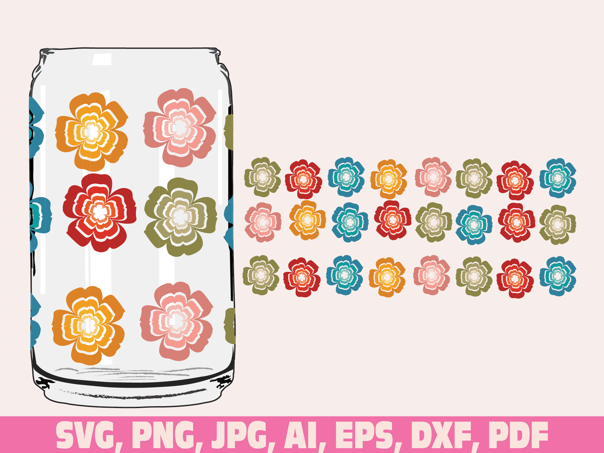 Flowers glass wrap svg png, can glass wrap, Flower Glass Wrap Svg, 16oz Full Wrap Svg, Can Glass Svg,Daisy Coffee Glass svg