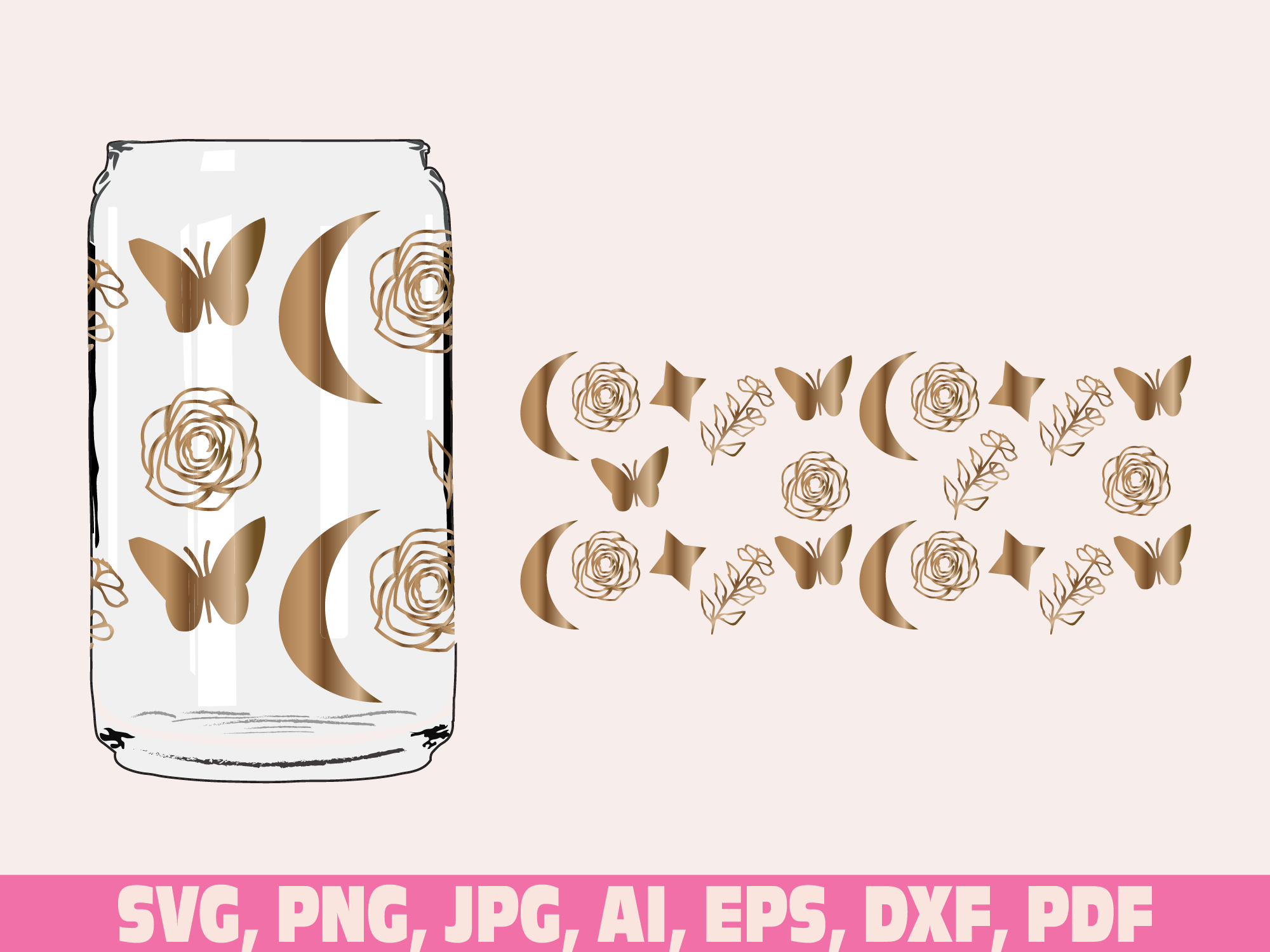 butterflies floral glass wrap svg png, can glass wrap, Butterfly moon Glass Wrap Svg, Coffee glass wrap svg, 16oz Full Wrap Svg, Can Glass Svg, Butterflies Coffee Glass, Butterfly