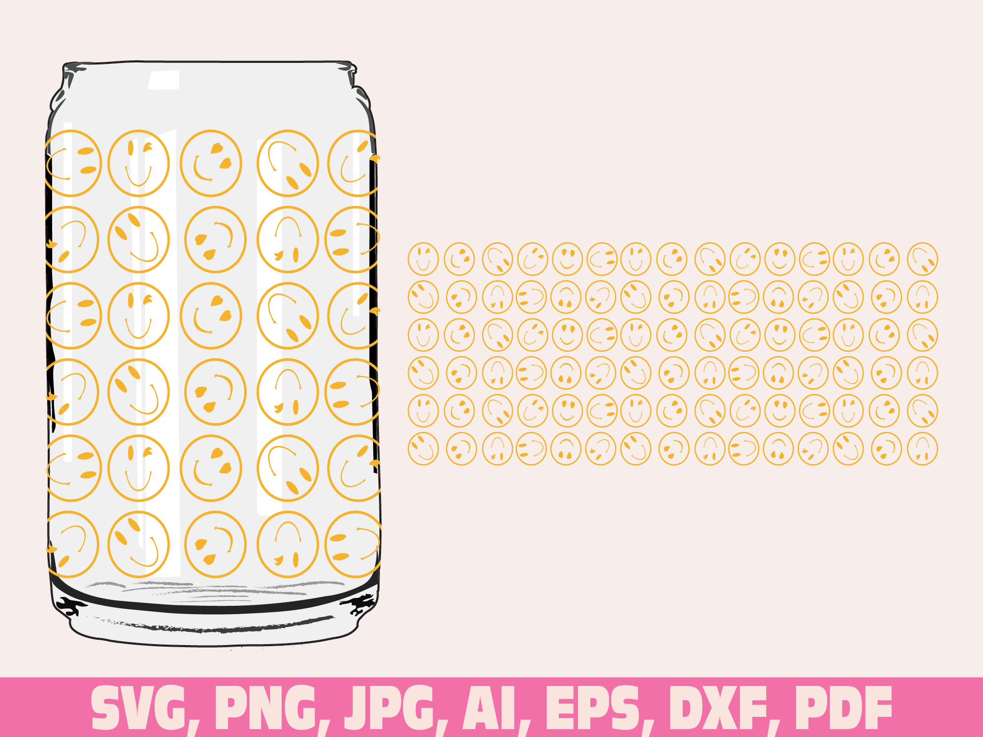 Smiley Face glass wrap svg png, can glass wrap, Smiley Face Glass Wrap Svg, 16oz Full Wrap Svg, Can Glass Svg, Happy Face Coffee Glass svg