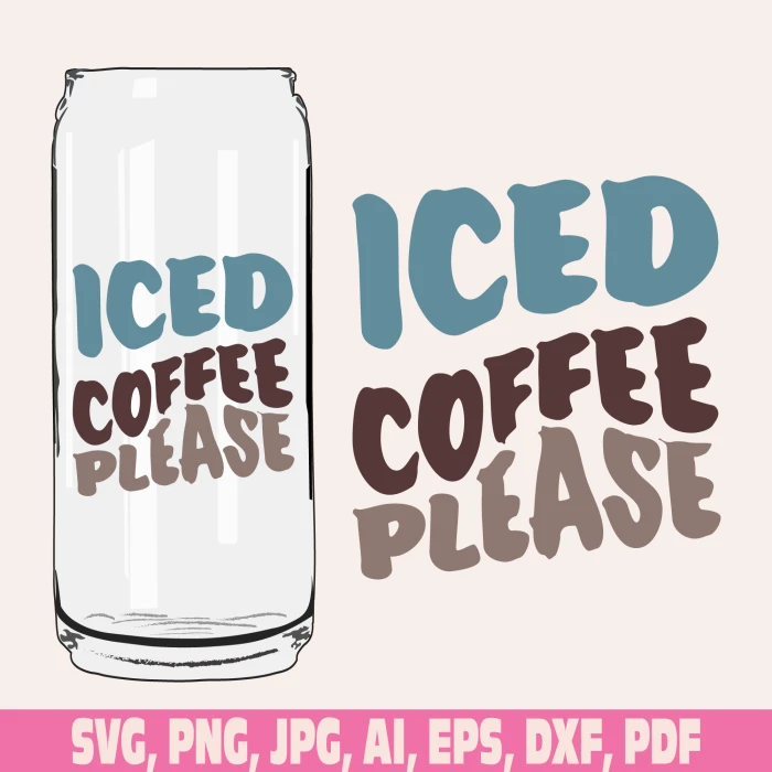 iced coffee please glass wrap svg, libbey glass svg, libby glass can, can glass wrap svg, 16oz Full Wrap, Can Glass svg, glass wraps
