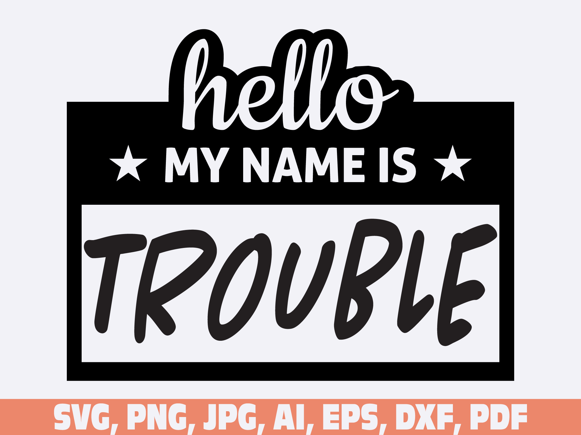 Hello My Name Is Trouble svg, name tag svg, Name Tag SVG Cut Files, Bold Black Name Badges svg, hello svg, baby svg, newborn svg, Kids SVG