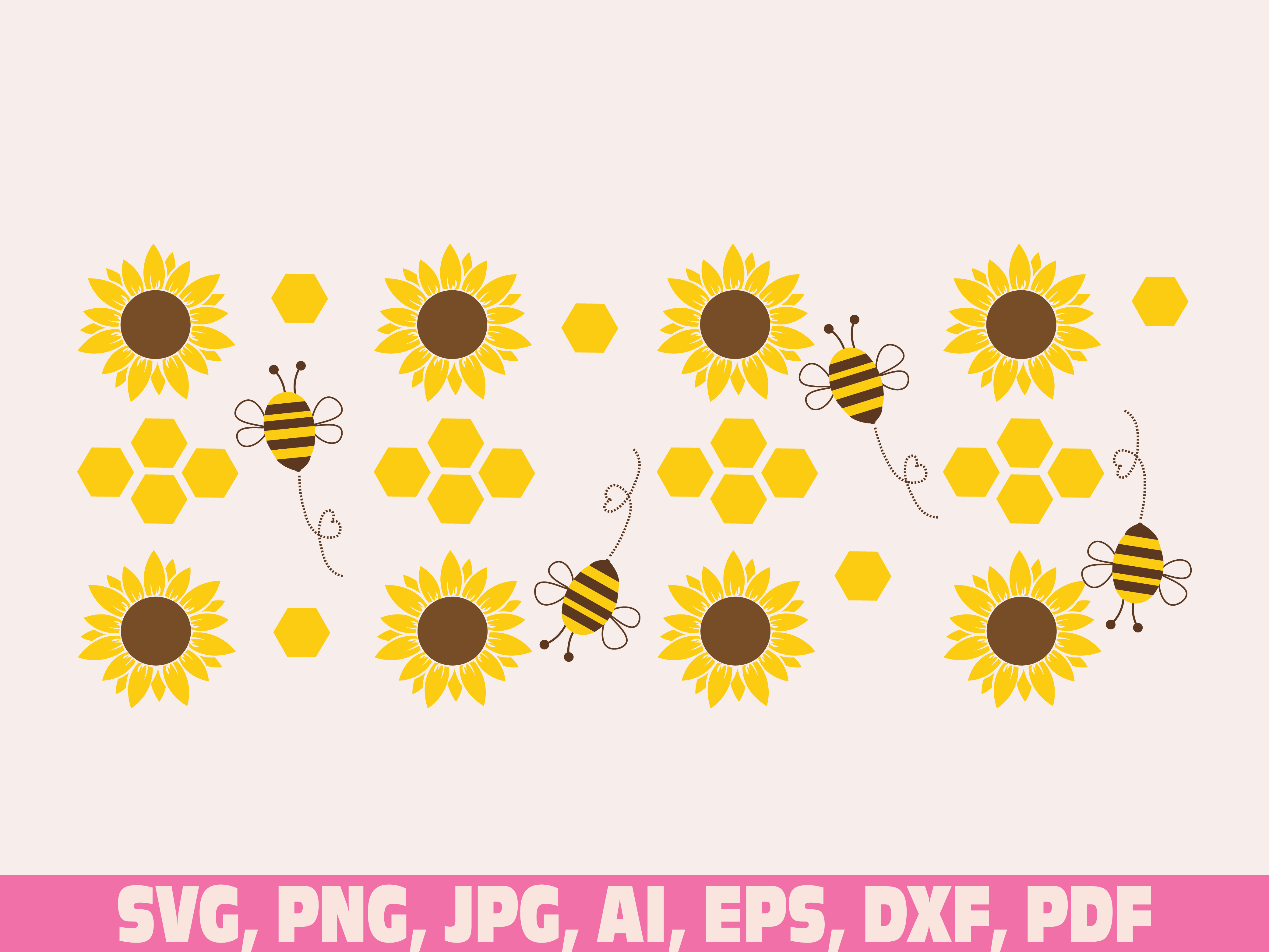 Bee Sunflower glass wrap svg png, Bee Sunflower Honey glass wrap svg, Can glass Wrap Svg, 16oz Full Wrap Svg, Can Glass Svg, iced Coffee Glass wrap svg png