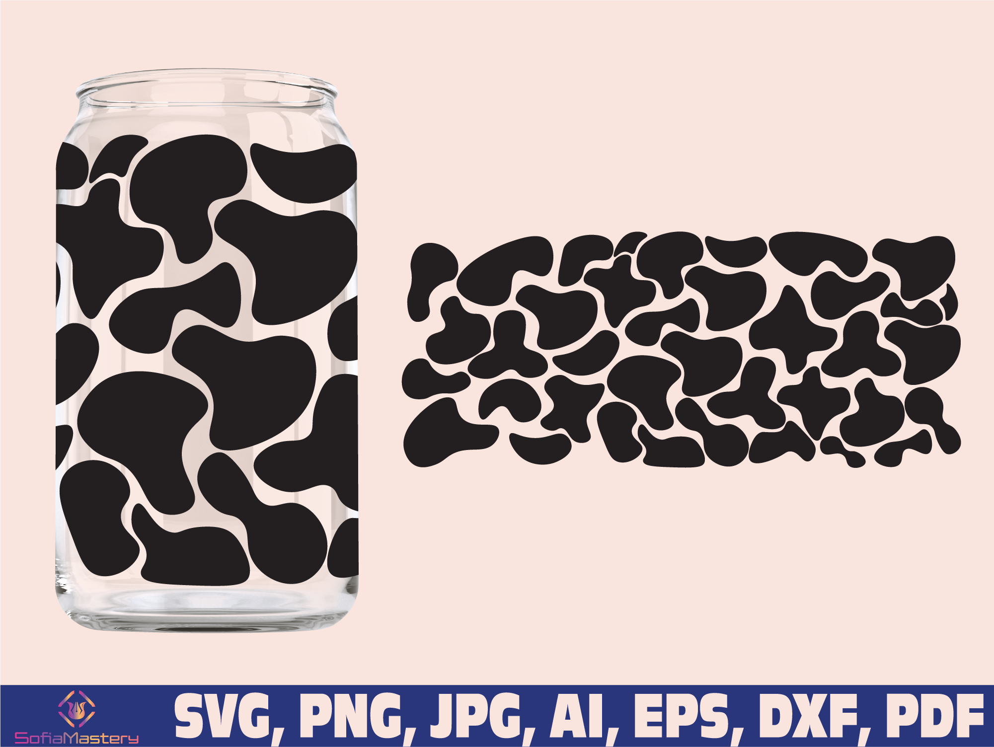 cow print glass wrap svg png, can glass wrap, Coffee Glass Wrap Svg, 16oz Full Wrap Svg, Can Glass Svg, cow Coffee Glass, cow can glass