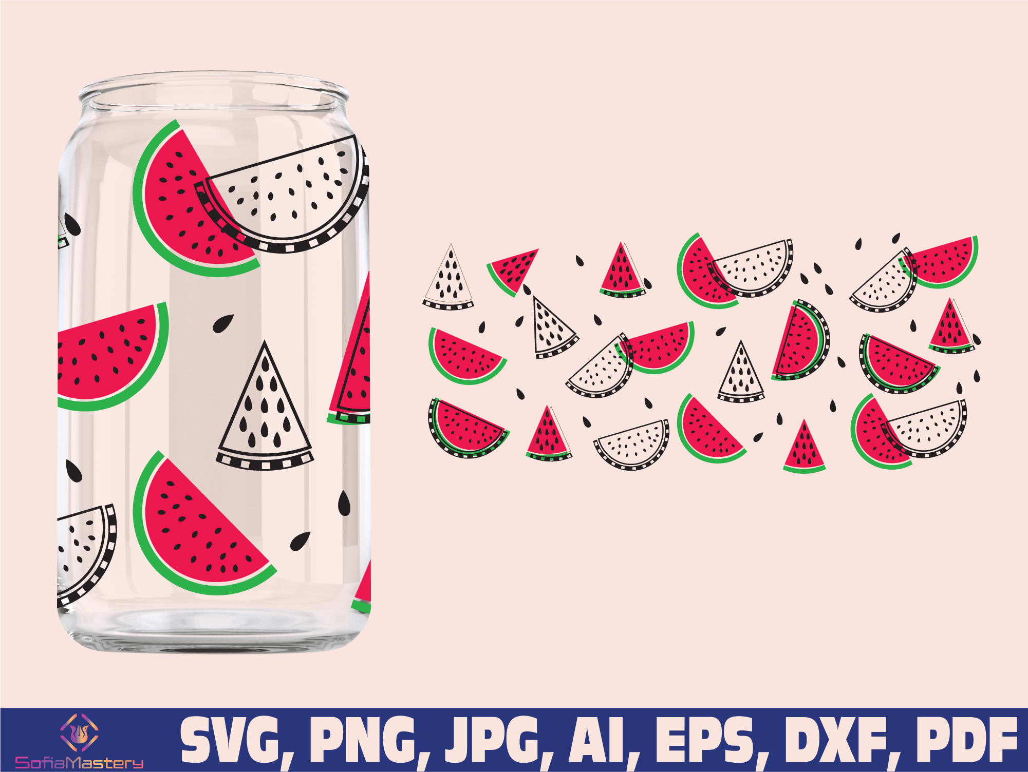 Watermelon glass wrap svg png, can glass wrap, Fruit pattern seamless Glass Wrap Svg, 16oz Full Wrap Svg, Can Glass , coffee can glass svg