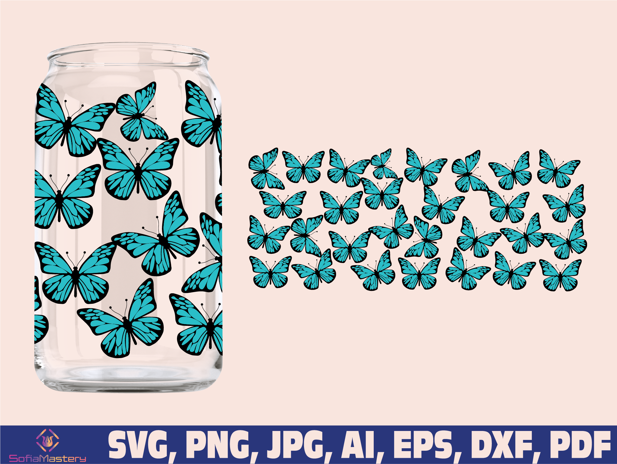 Butterfly glass wrap svg png, can glass wrap, Coffee Glass Wrap Svg, 16oz Full Wrap Svg, Can Glass Svg, Butterflies Coffee Glass, Butterfly