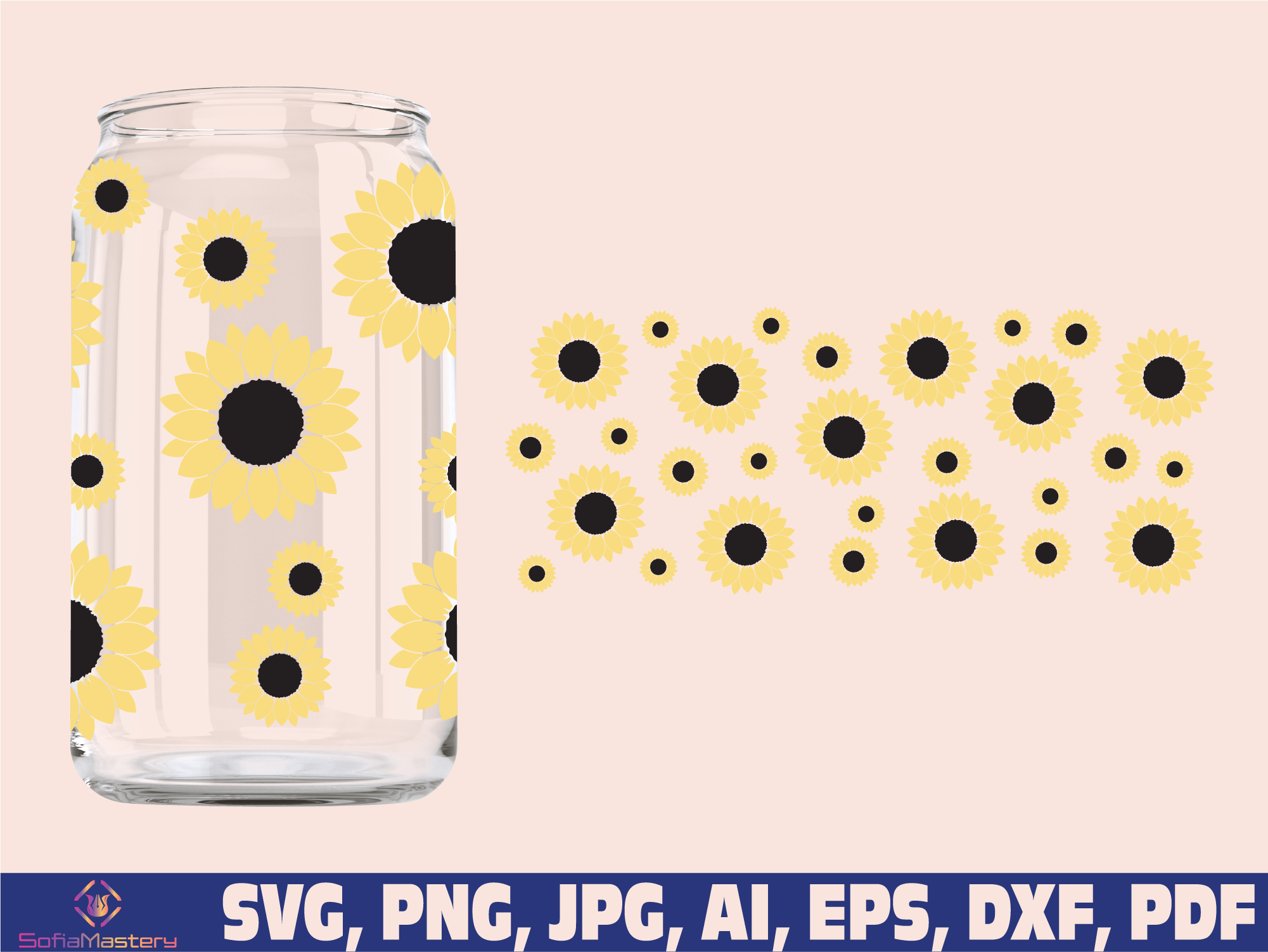 Sunflower glass wrap svg png, can glass wrap, libbey glass svg, libby glass can svg, 16oz Full Wrap Svg, Can Glass Svg, Coffee glass can