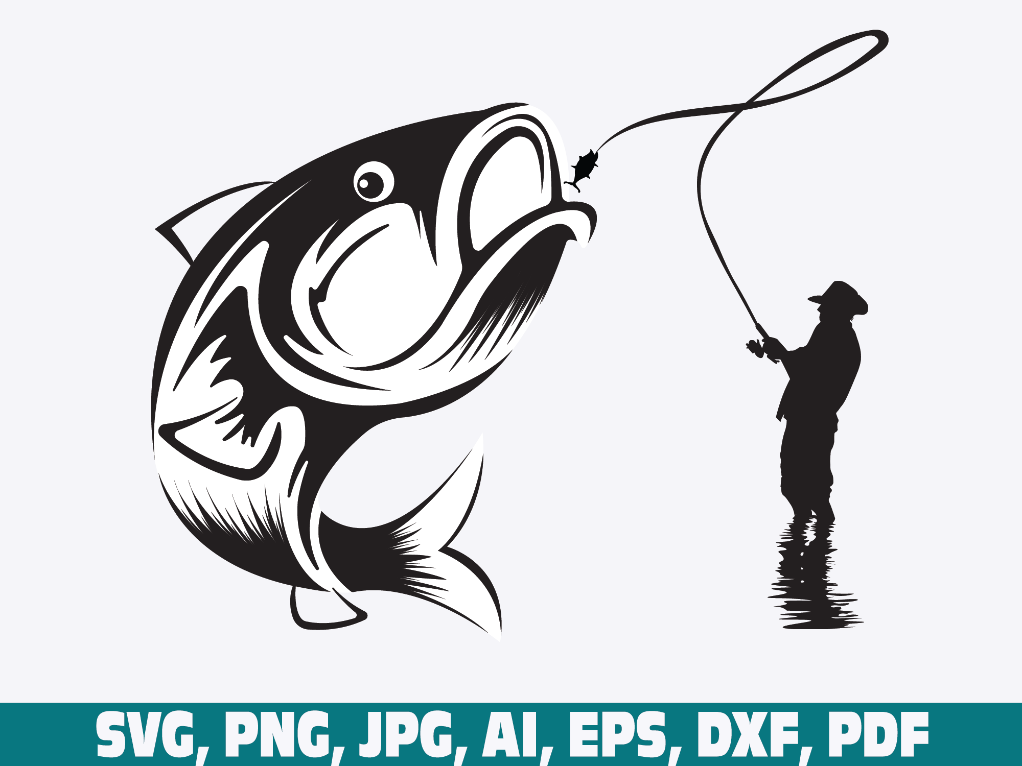 Fisherman catching fish SVG, EPS, PNG, pdf, Fishing Svg, Cut File, Cricut, Clipart, Funny Fishing, Father's Day