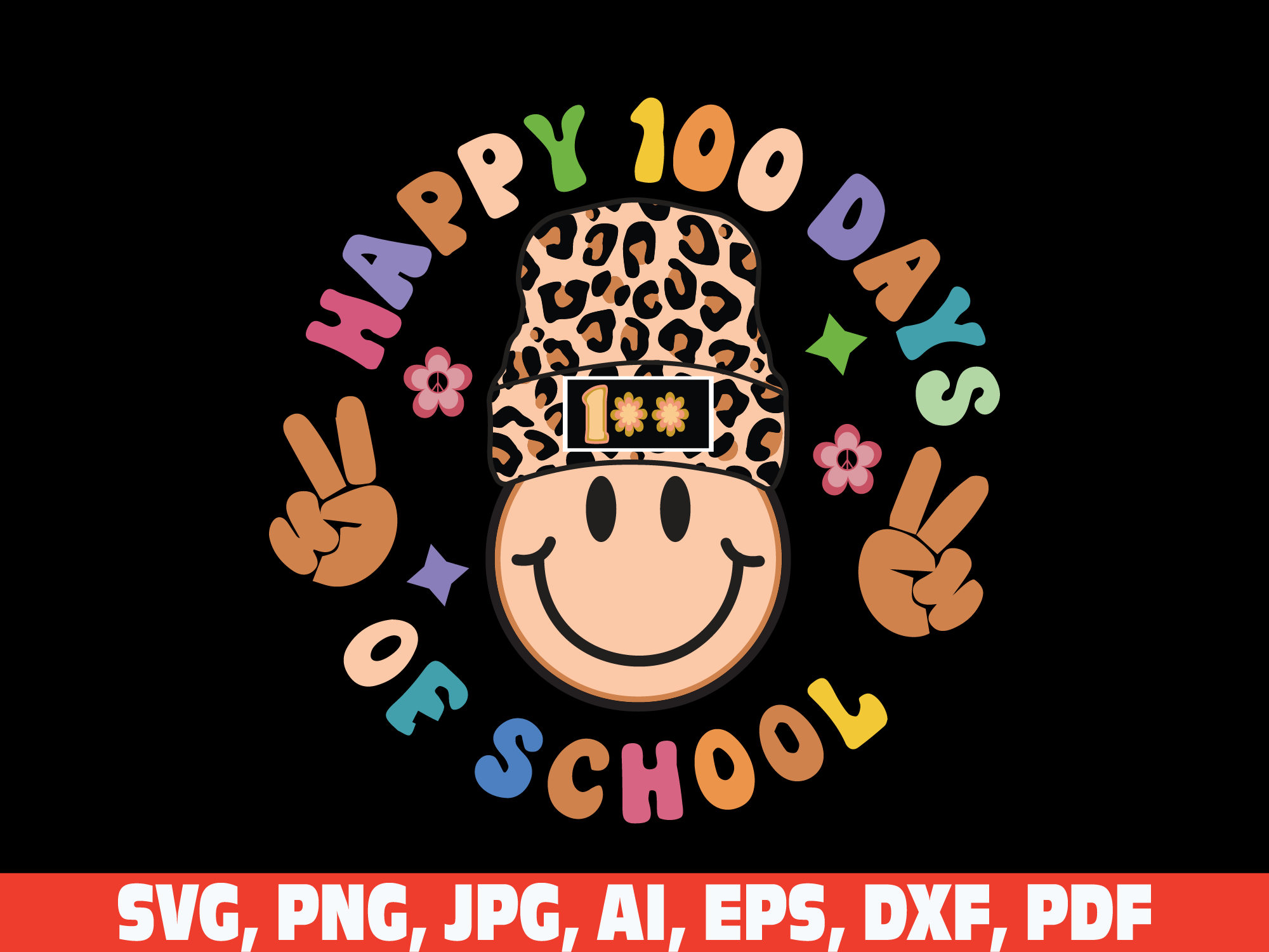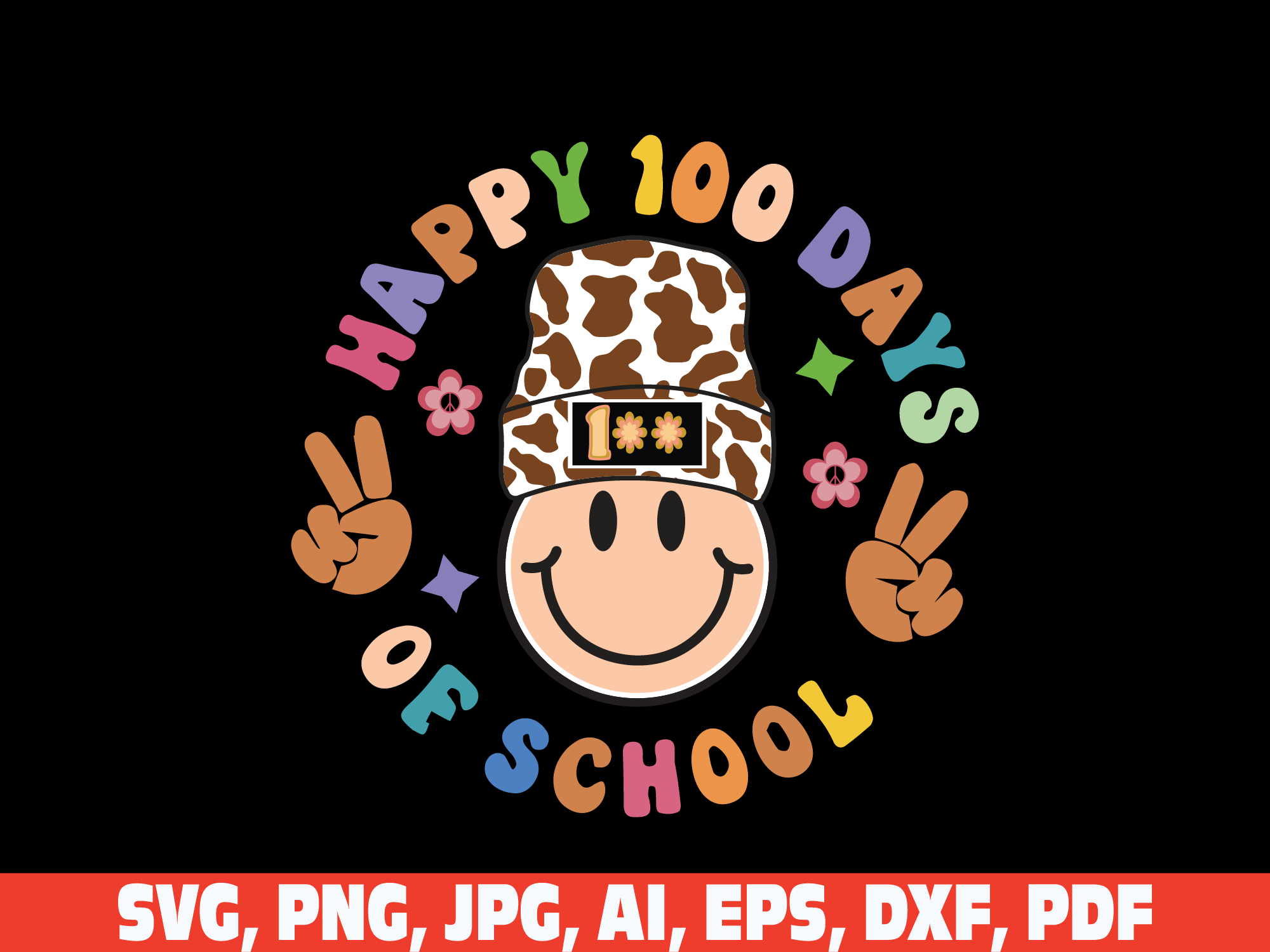 beanie smile face retro vintage 100 days of school svg, leopard cow print beanie smile vintage 100 days png svg, Smiling 100 days of School, 100th day of School svg, Retro day of School shirt