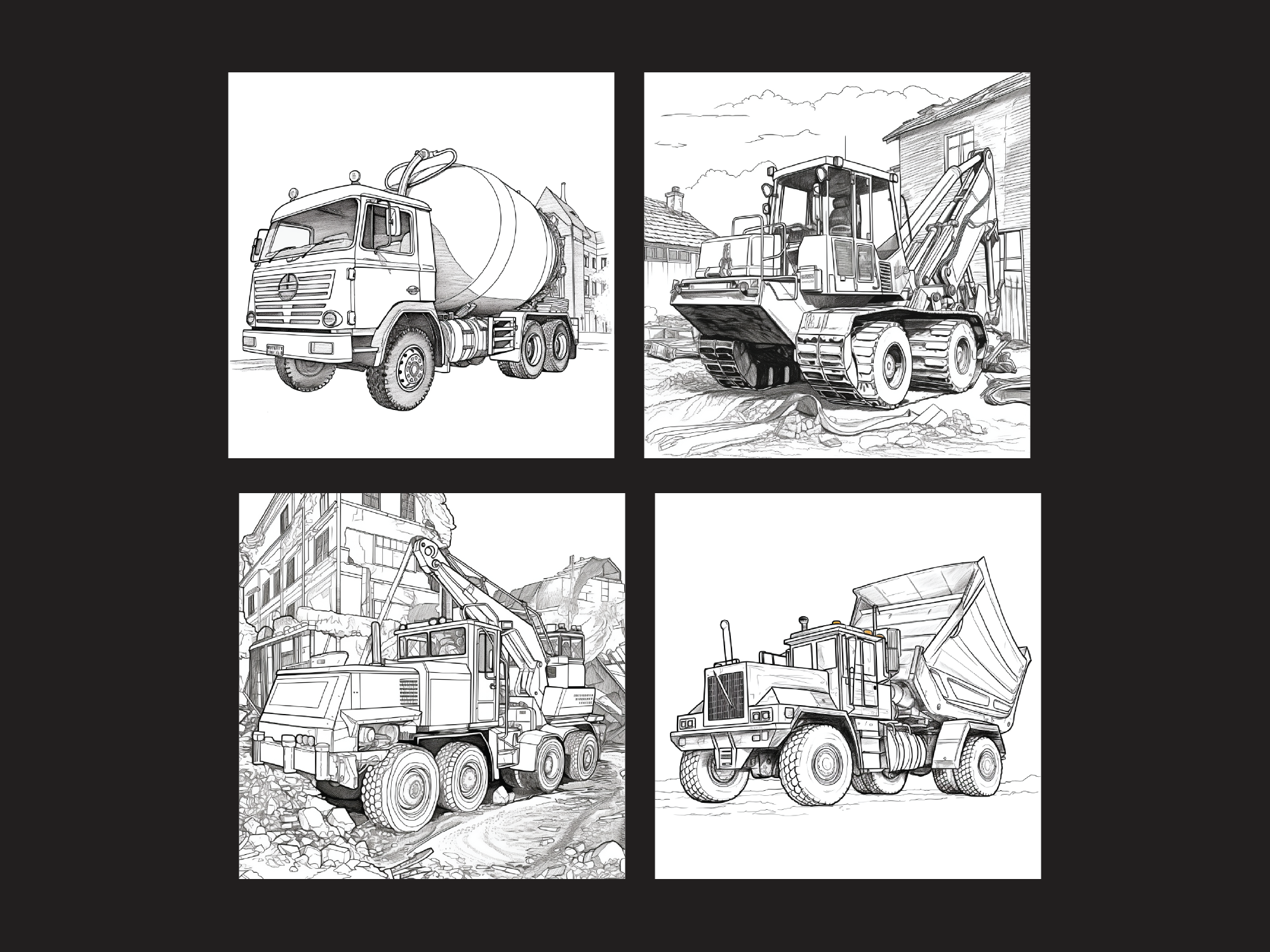Midjourney Prompts Construction Coloring book pages, tested Midjourney prompt, midjourney tech, best Midjourney Prompt, AI prompt, coloring
