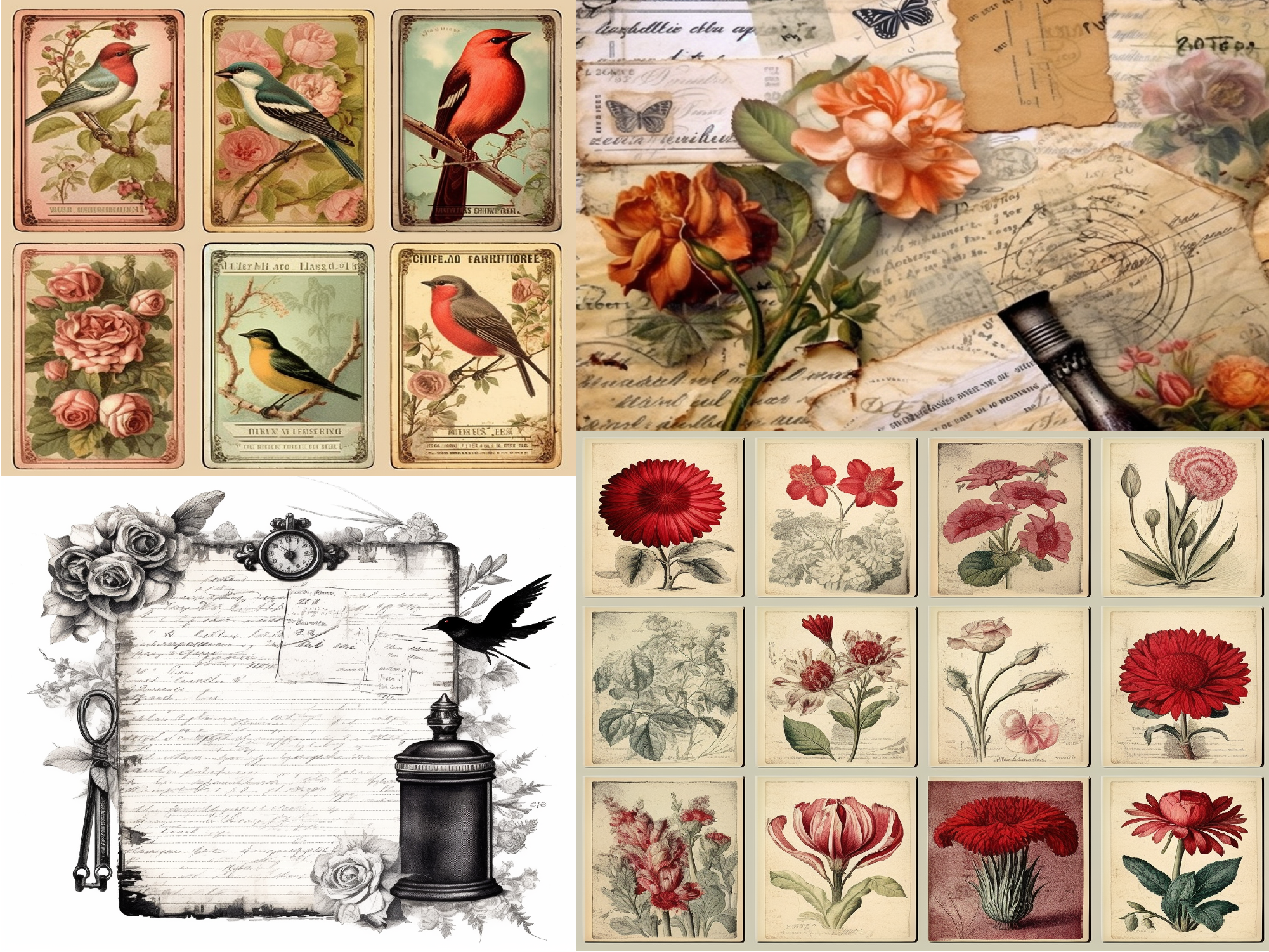 junk journal kit, Shabby Labels Ephemera paperwork Tickets Embellishment Roses Cards Stamps Postcards Tags vintage pages Printable Bundle