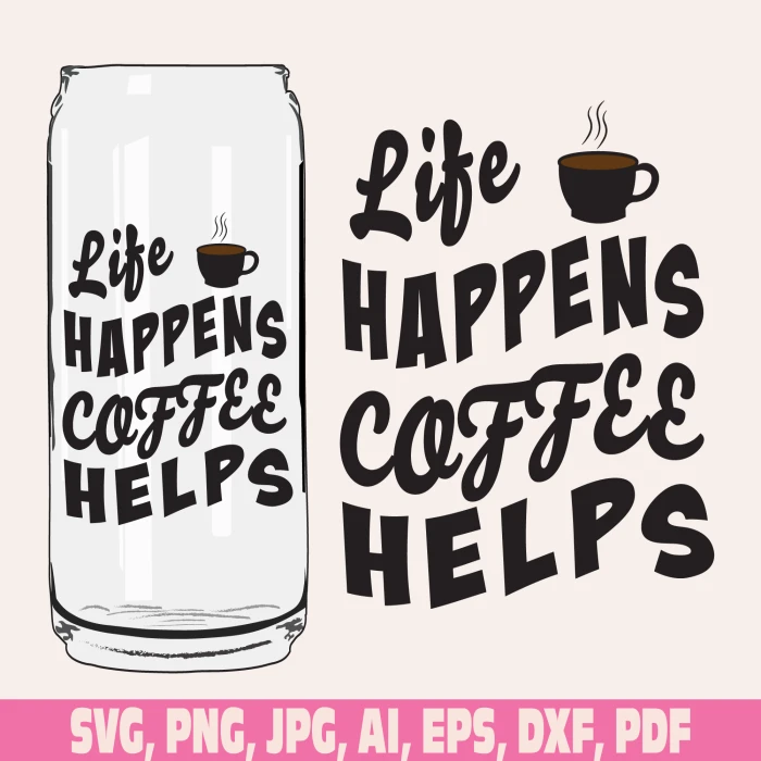 Life happens coffee helps glass wrap svg png, Coffee Can Glass Svg, 16oz Libbey Wrap Svg, Coffee glass wrap svg, Coffee Full Wrap SVG, Coffee glass can svg
