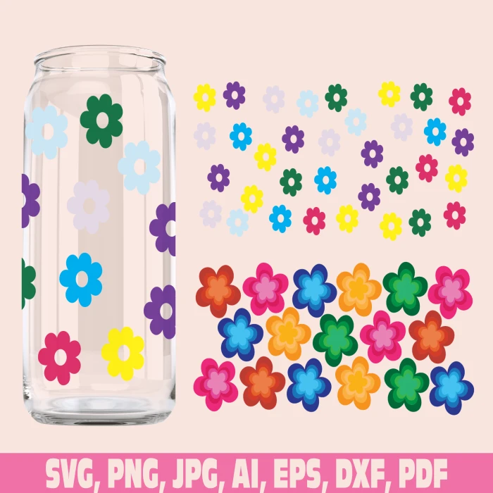 Daisy glass wrap svg png, can glass wrap svg, Flowers Glass Wrap Svg, 16oz Full Wrap Svg, Can Glass Svg, Daisy Coffee Glass Can svg, Can glass wrap svg